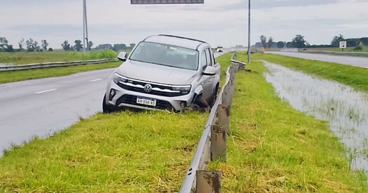 Allí una camioneta volkswagen amarok sufrió un despiste y termina colisionando con las defensas. Afortunadamente solo se registraron daños materiales, el conductor resultó ileso.
