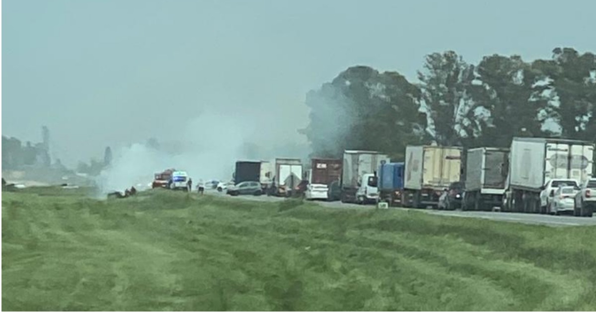 Ruta cortada, se trabaja en el lugar, el auto colisionó de frente contra el camión y posteriormente se comenzó a prender fuego.